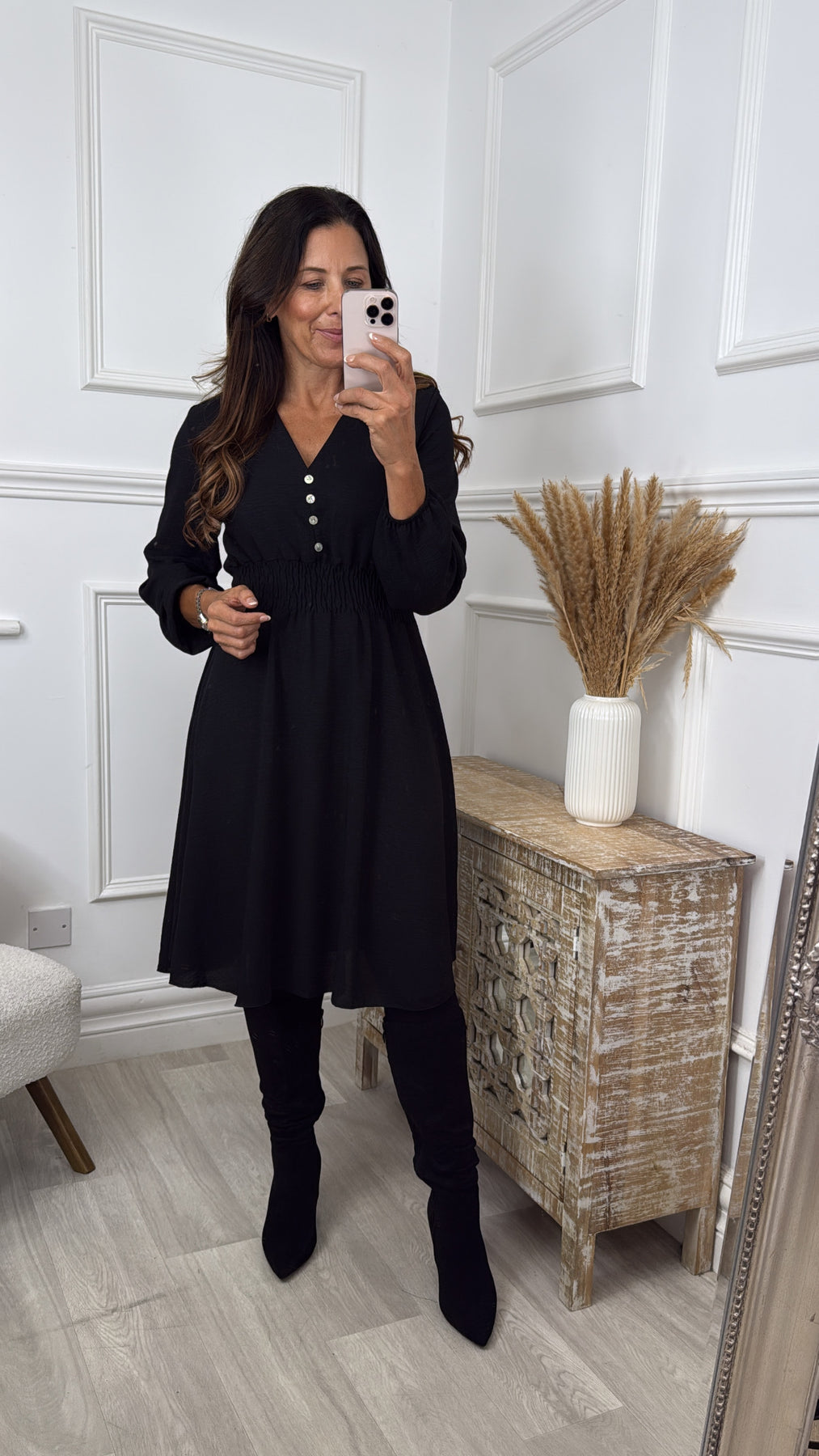 Melinda Black Shirred Waist Dress