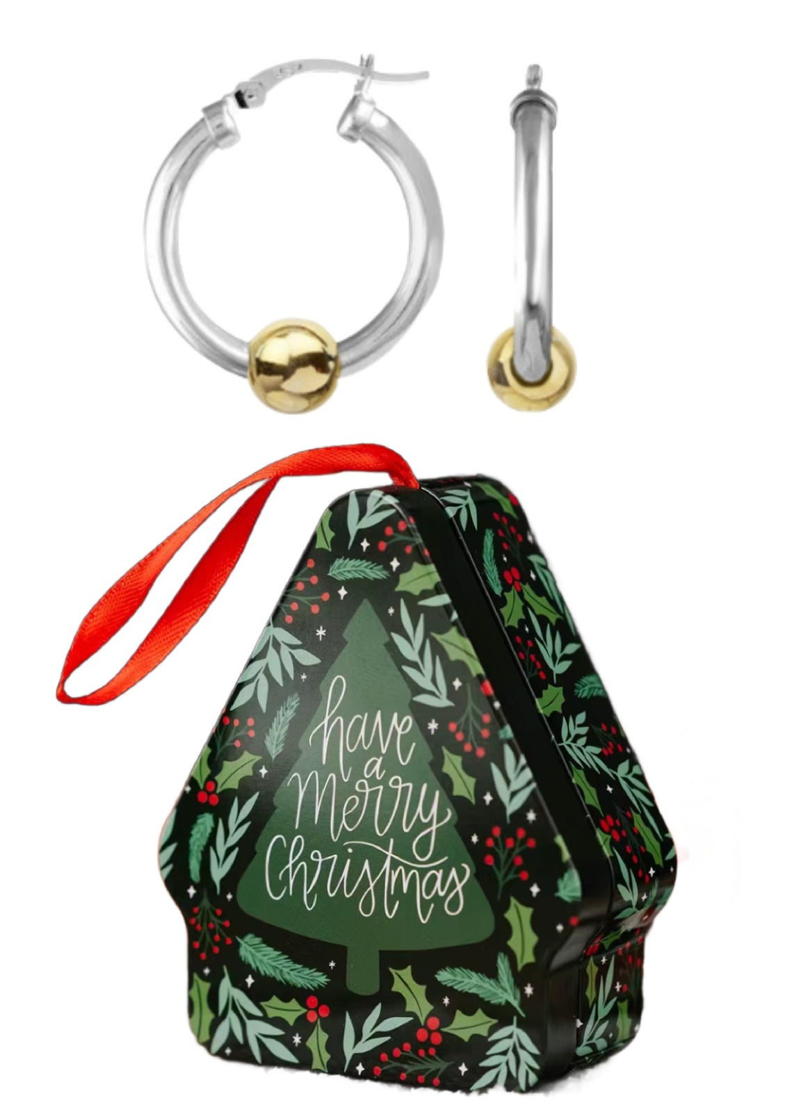 Mixed Metal Hoop Earrings Christmas Ornament Tin