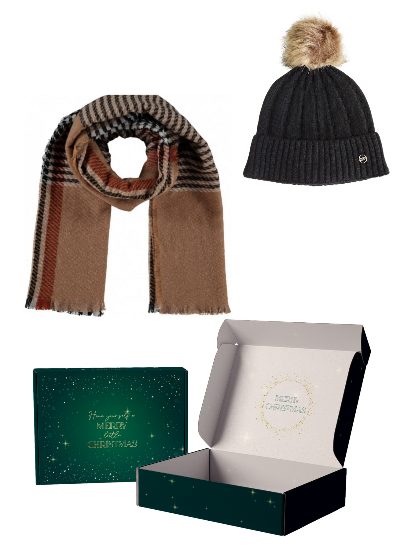 Send a friend a hug in a box with our thoughtful MacNamara Gift Box, including a lovely scarf, and hat. Everything comes nicely packaged in an exclusive Christmas gift box.